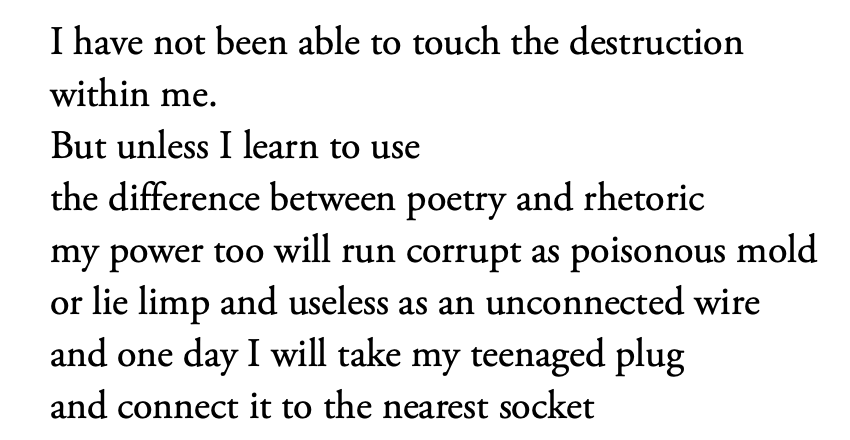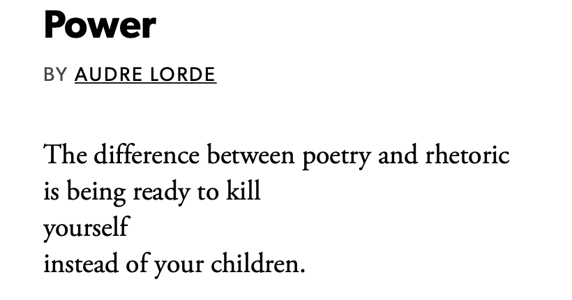 Then I rediscover and redeem an understanding of *Audre Lorde’s poem “Power”